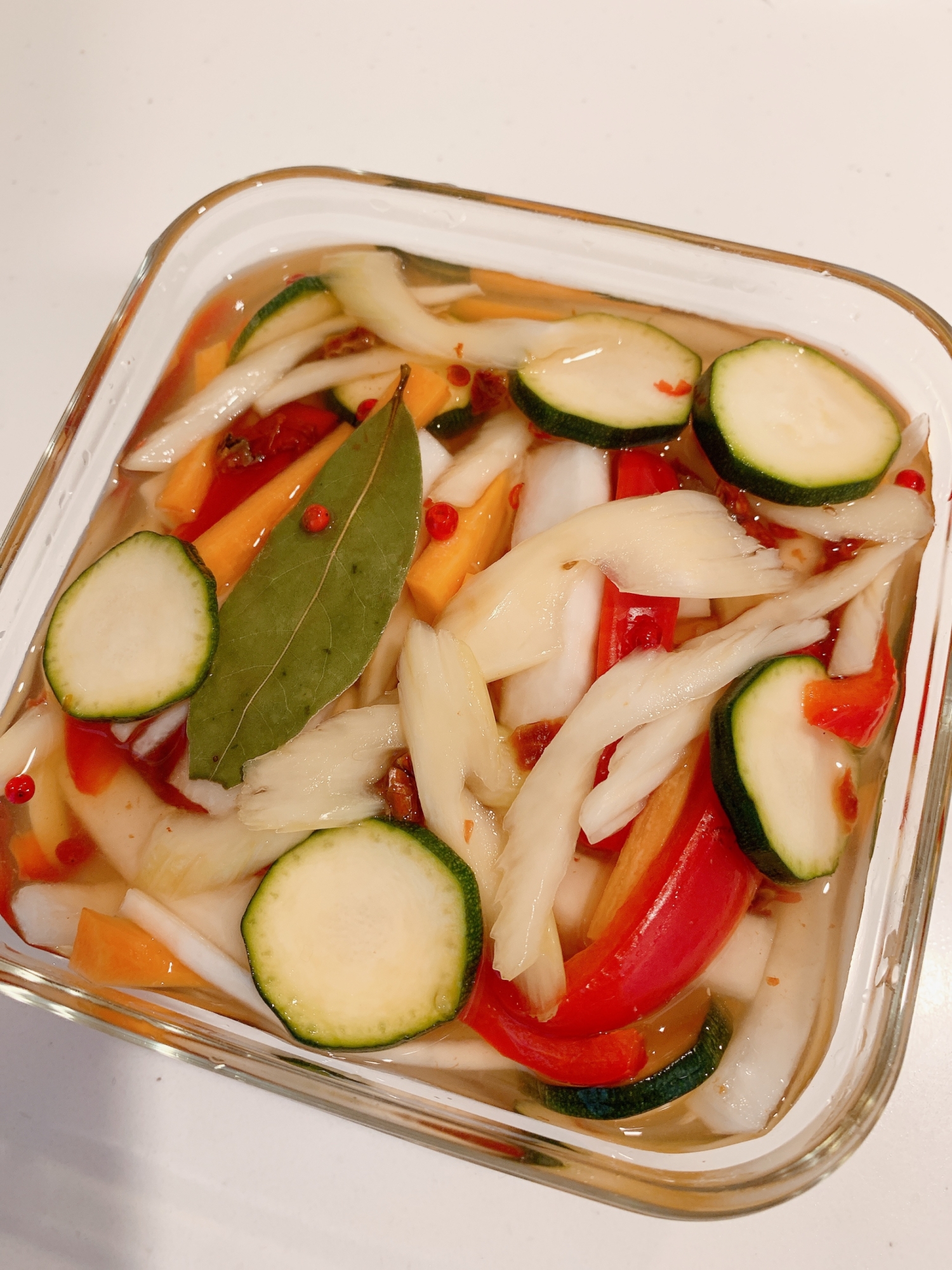 ピクルス に すると 美味しい 野菜-ピクルスにすると美味しい野菜! セロリ きゅうり にんじん パプリカ ミニトマト 大根 これ以外にこの野菜美味しいよーとかあったら 教えていただきたいです!あと、よくみんな瓶にいれてるのを見るのですが、ジップロックとかで 基本23/6/17 好みの野菜 パプリカ きゅうり カブ ミョウガ ラディッシュ トマト など 作りかた 1野菜以外の材料をすべて鍋に入れ、火にかける。砂糖が溶け、ひと煮立ちしたら火を止めて冷ます 2にんにくをのぞいて、ピクルス液を保存瓶に入れる